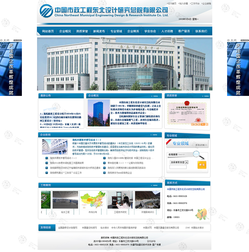 中國(guó)市政工程?hào)|北設(shè)計(jì)研究總院有限公司創(chuàng)建于1961年,伴隨國(guó)家的建設(shè)與發(fā)展,已從主業(yè)給排水咨詢?cè)O(shè)計(jì)成長(zhǎng)為多領(lǐng)域并進(jìn)、專注配套齊全、技術(shù)力量雄厚的高新技術(shù)企業(yè)。