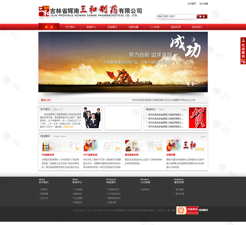 吉林省輝南三和制藥有限公司座落在藥用植物資源豐富、美麗富饒的長白山腳下。集藥品研發(fā)、生產(chǎn)和營銷于一體。公司成立于二0一0年,二O一三年一月通過認(rèn)證。公司占地面積9.33萬㎡,建筑面積3.7萬㎡。地處營白高速、長白公路中間,交通便利,條件優(yōu)越。公司現(xiàn)有員工176人,其中高中級(jí)專注技術(shù)人員四十余名。管理機(jī)構(gòu)、人員配置、質(zhì)量標(biāo)準(zhǔn)均按GMP要求標(biāo)準(zhǔn)實(shí)施。市場上擁有一支文化素質(zhì)高、業(yè)務(wù)能力強(qiáng)的營銷隊(duì)伍...