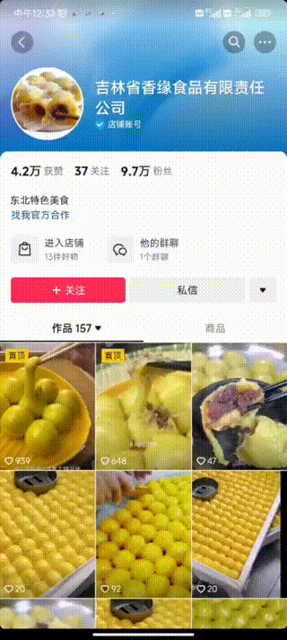 企業(yè)抖音藍(lán)v賬號(hào)展示——吉林省香緣食品有限責(zé)任公司