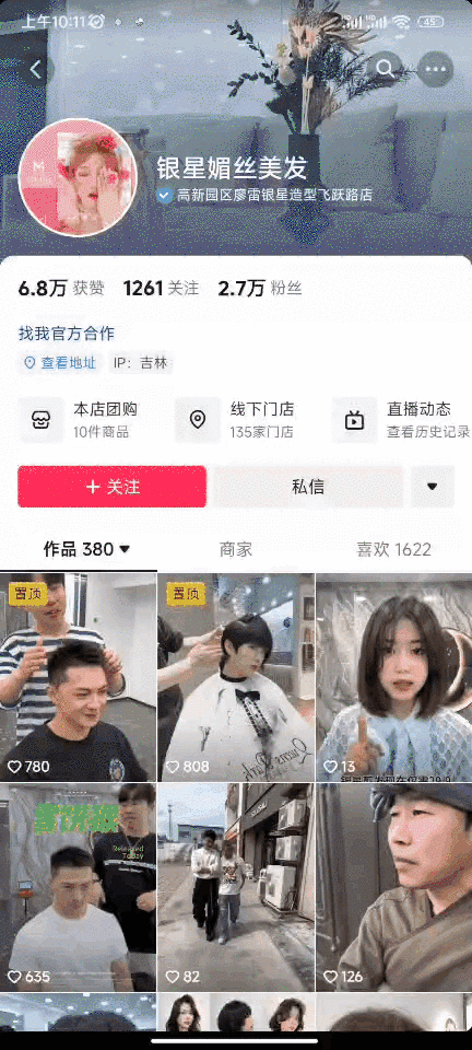 企業(yè)抖音藍(lán)v賬號(hào)展示——銀星媚絲美發(fā)