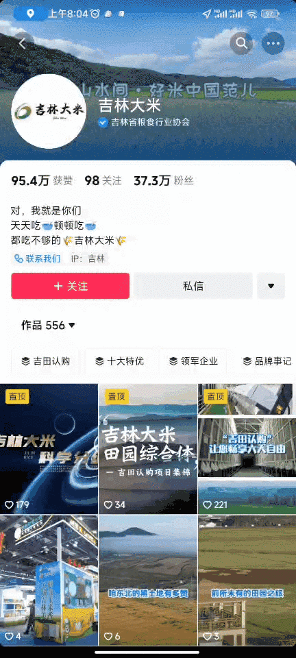 企業(yè)抖音藍(lán)v賬號展示——吉林大米