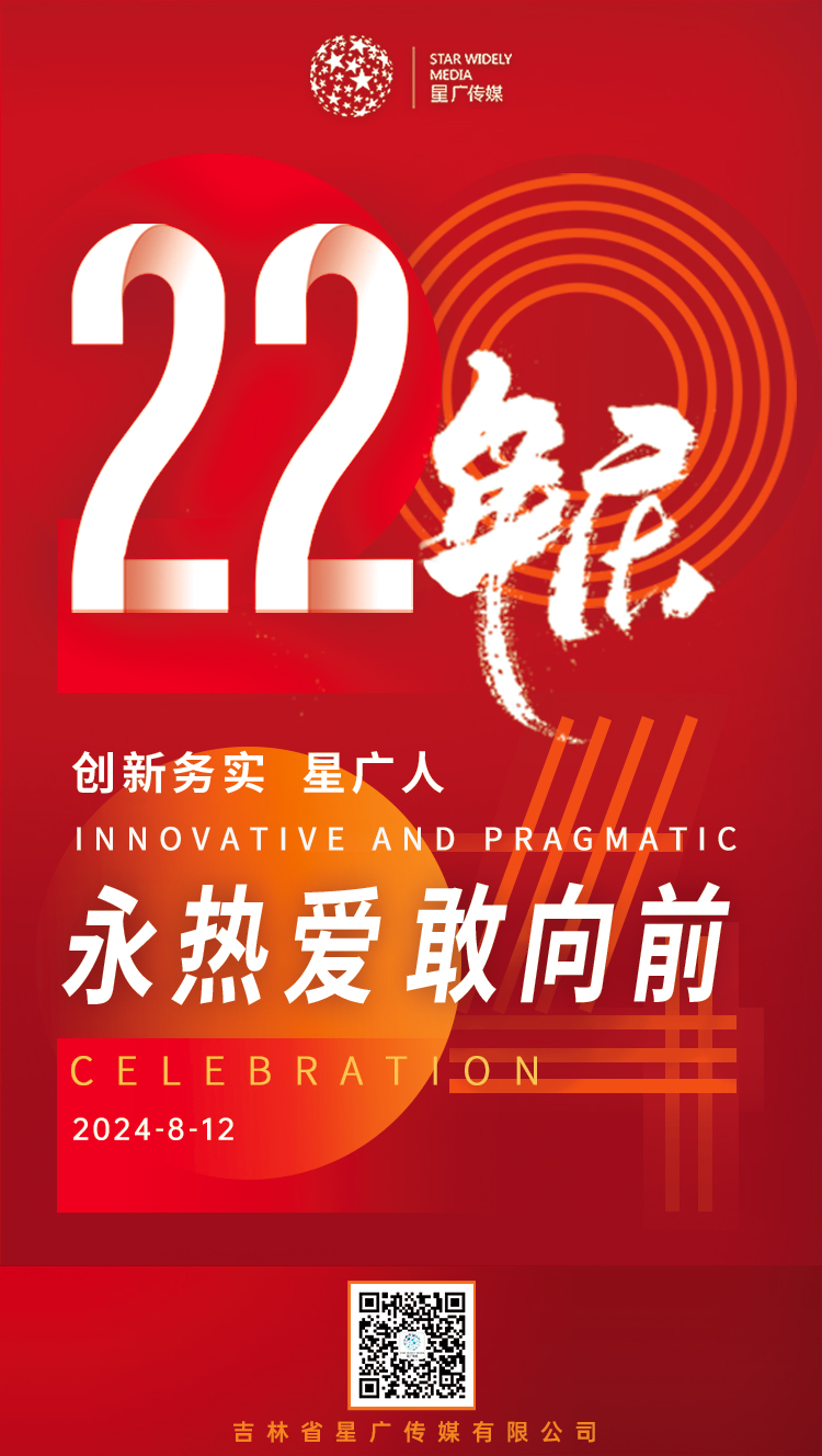 隨著歲月的流轉(zhuǎn),星廣傳媒迎來了它22歲的生日。在這段漫長而又短暫的時光里,我們始終秉持著“創(chuàng)新務(wù)實(shí),以人為本,合作共贏”的企業(yè)精神,不斷在傳媒領(lǐng)域書寫新的篇章。